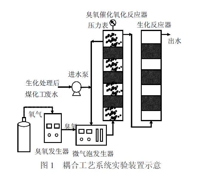 本研究采用微氣泡臭氧催化氧化-生化耦合工藝,對某實際煤化工廢水生化出水進(jìn)行深度處理.水質(zhì)分析表明,該廢水生化出水存在大量含氮雜環(huán)芳烴類污染物,可生化性極差,傳統(tǒng)曝氣生物濾池(BAF)對其COD去除率僅6.4%,難以采用生化工藝直接處理.本研究采用微氣泡臭氧催化氧化含氮雜環(huán)芳烴類污染物,提高廢水可生化性并去除部分COD,而后采用生化處理進(jìn)一步去除COD 和氨氮.此外,還考察了微氣泡臭氧催化氧化-生化耦合處理去除污染物性能,并分析了處理過程中含氮雜環(huán)芳烴類污染物降解和可生化性變化,以期為該耦合工藝應(yīng)用于煤化工廢水深度處理和含氮雜環(huán)芳烴類污染物去除提供參考.